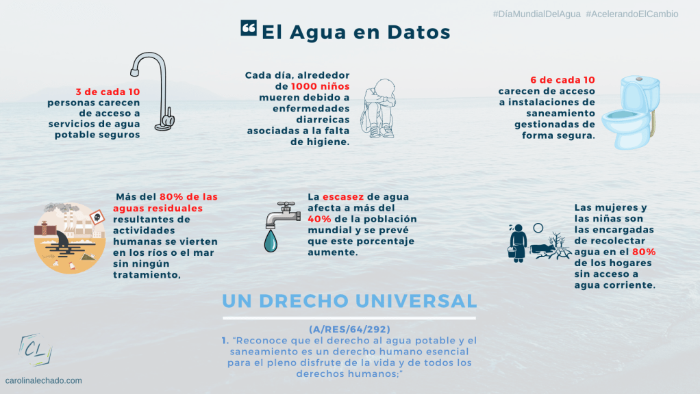 Según los datos vistos y estando a 7 años para el 2030, se debería de aplicar el lema de este año por el Día Mundial del Agua “Acelerando el cambio”, para conseguir que el acceso al agua y a un saneamiento digno sea universal, igualitario y accesible para todo el mundo tal y como se entiende su derecho universal.